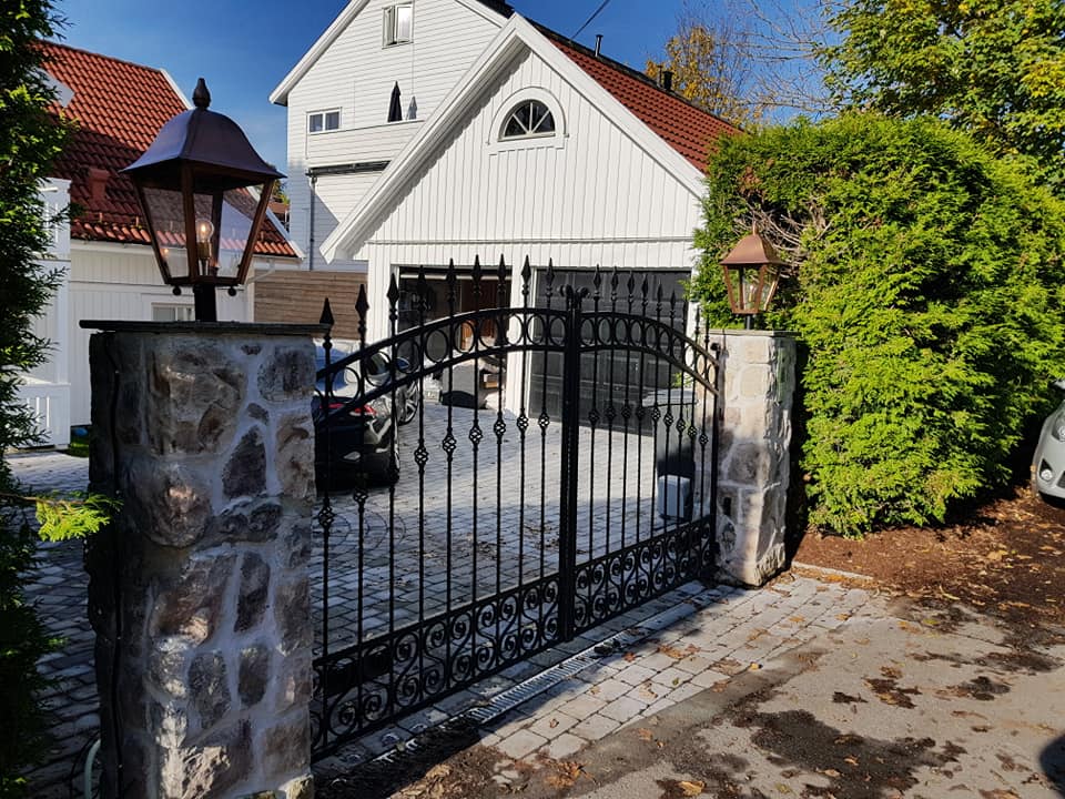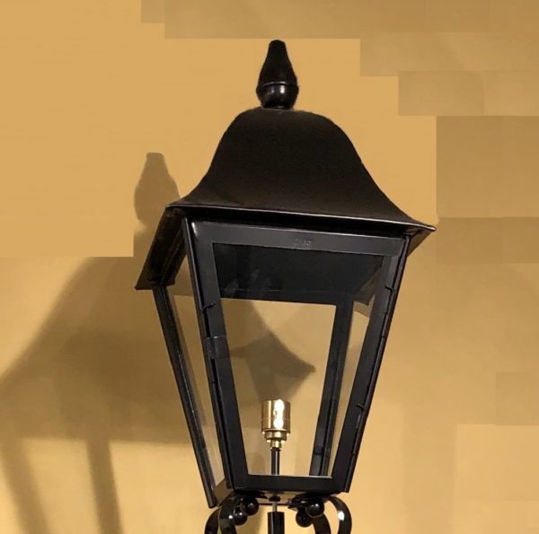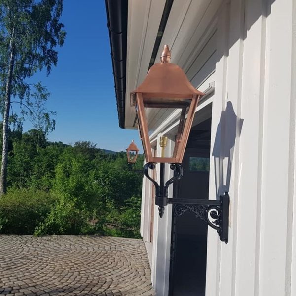 Lykta kan settes på veggoppheng eller på lyktestolpe.